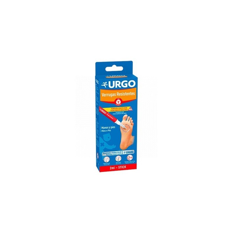 Antes de su uso, lea atentamente el modo de empleo. El stick de URGO VERRUGAS RESISTENTES contiene un gel altamente eficaz pero corrosivo. Para uso externo únicamente en manos y pies. Si no está seguro de que su afección cutánea sea una verruga, consulte a un médico antes de usar este producto.