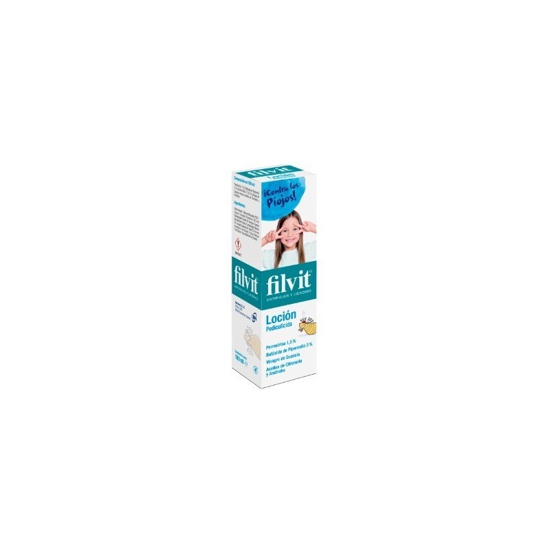 1. Aplicar Filvit® Loción Permetrina sobre el cabello seco con un suave masaje y mantener aplicado durante 10 minutos