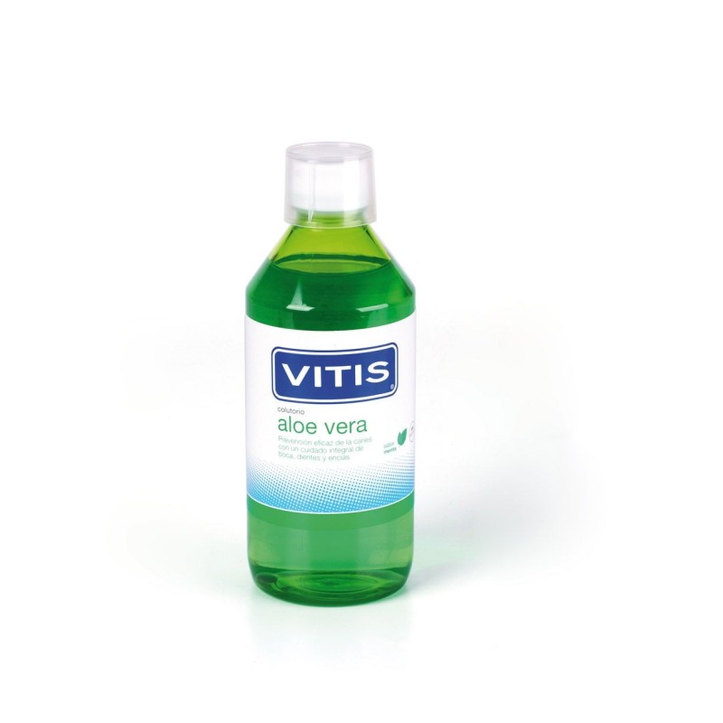 Vitis Aloe Vera Colutorio Sabor Menta es un enjuague bucal con efecto antiséptico que elimina el biofilm oral de la cavidad bucal, llegando a las zonas de difícil acceso, como las zonas posteriores. Su completa formulación contiene los principios activos necesarios para una higiene bucal óptima. Su uso diario proporciona cuidado integral de boca, dientes y encías dejando un agradable y refrescante sabor a menta.