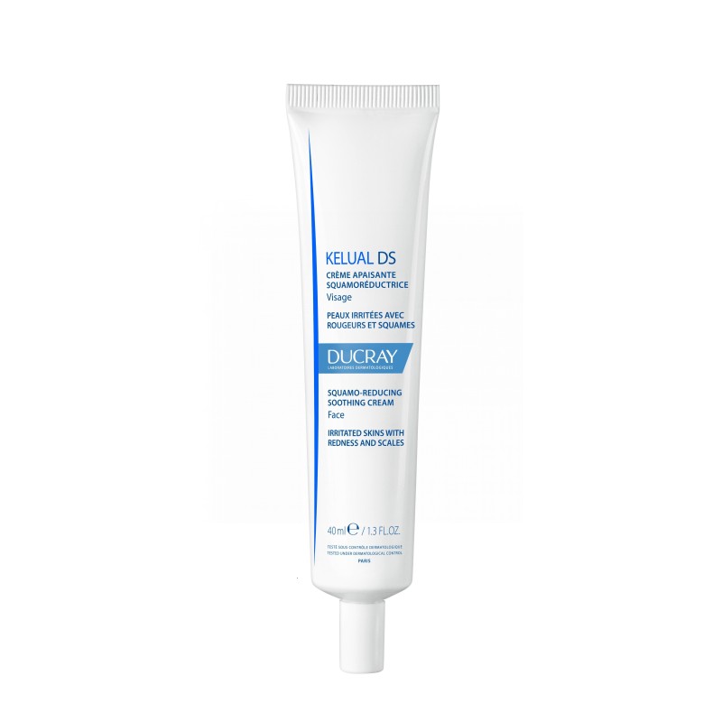 • La crema calmante queratorreductora KELUAL DS alivia el enrojecimiento y la irritación de la piel, elimina las escamas (finas capas de piel que se desprenden) y previene de forma duradera su reaparición*