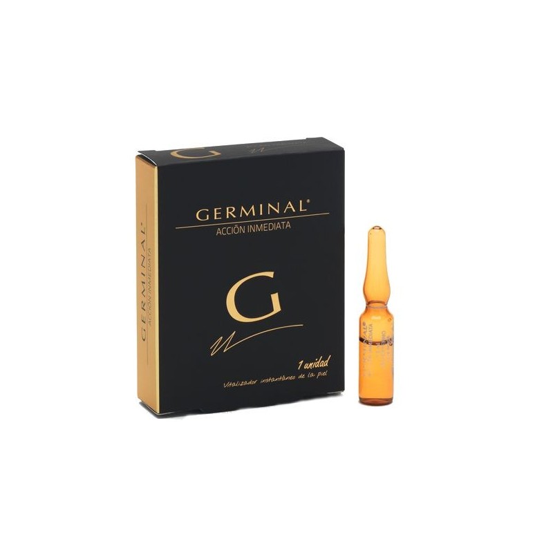 Germinal Acción Inmediata efecto flash instantáneo dejan la piel radiante durante al menos 8 horas. Germinal Acción Inmediata ampollas son un poderoso revitalizador de tejidos que consigue combatir las huellas de la fatiga en el rosto.