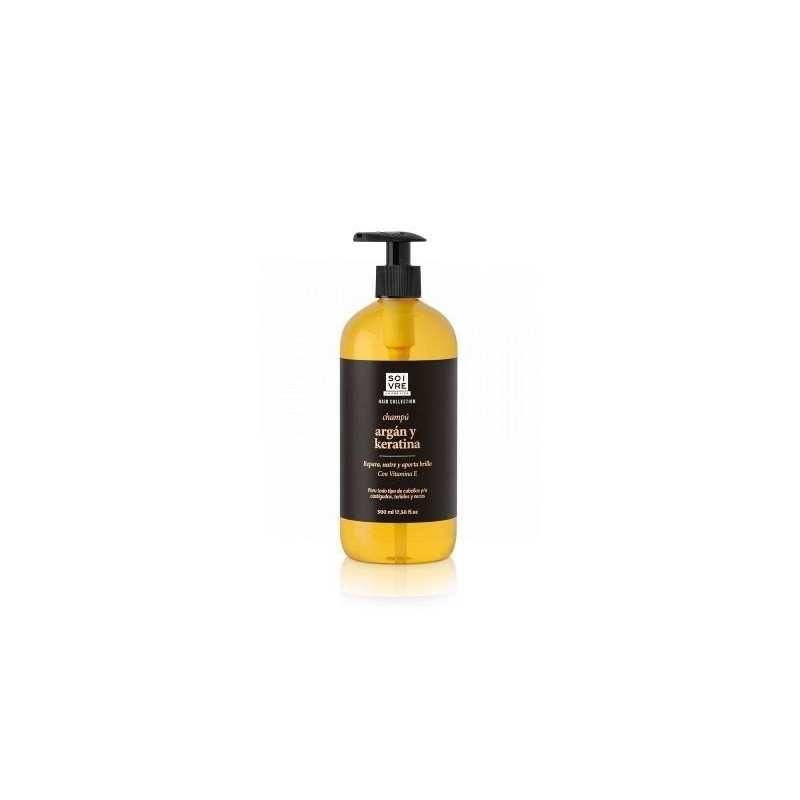 Soivre Champú Argán y Keratina limpia suavemente y fortalece el cabello dándole un brillo espectacular y una sensación sedosa extrema. Aconsejado para todo tipo de cabellos especialmente castigados, teñidos, secos y deteriorados por tratamientos o secados agresivos.