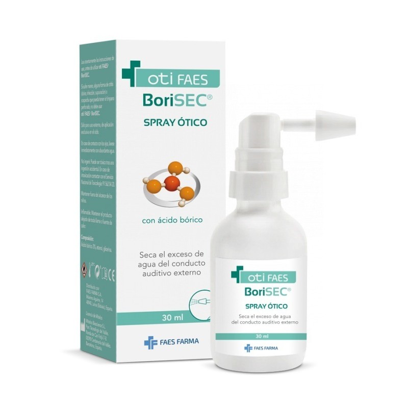 oti FAES BoriSEC Spray Ótico es una solución eficaz diseñada para secar el conducto auditivo externo y aliviar la sensación de oído tapado causada por la acumulación de agua. Este spray es ideal para usar durante la higiene diaria, en la práctica de deportes acuáticos o después de estar en ambientes húmedos. Además, su fórmula ayuda a prevenir la proliferación de bacterias, reduciendo el riesgo de otitis externa, comúnmente conocida como "oído del nadador".